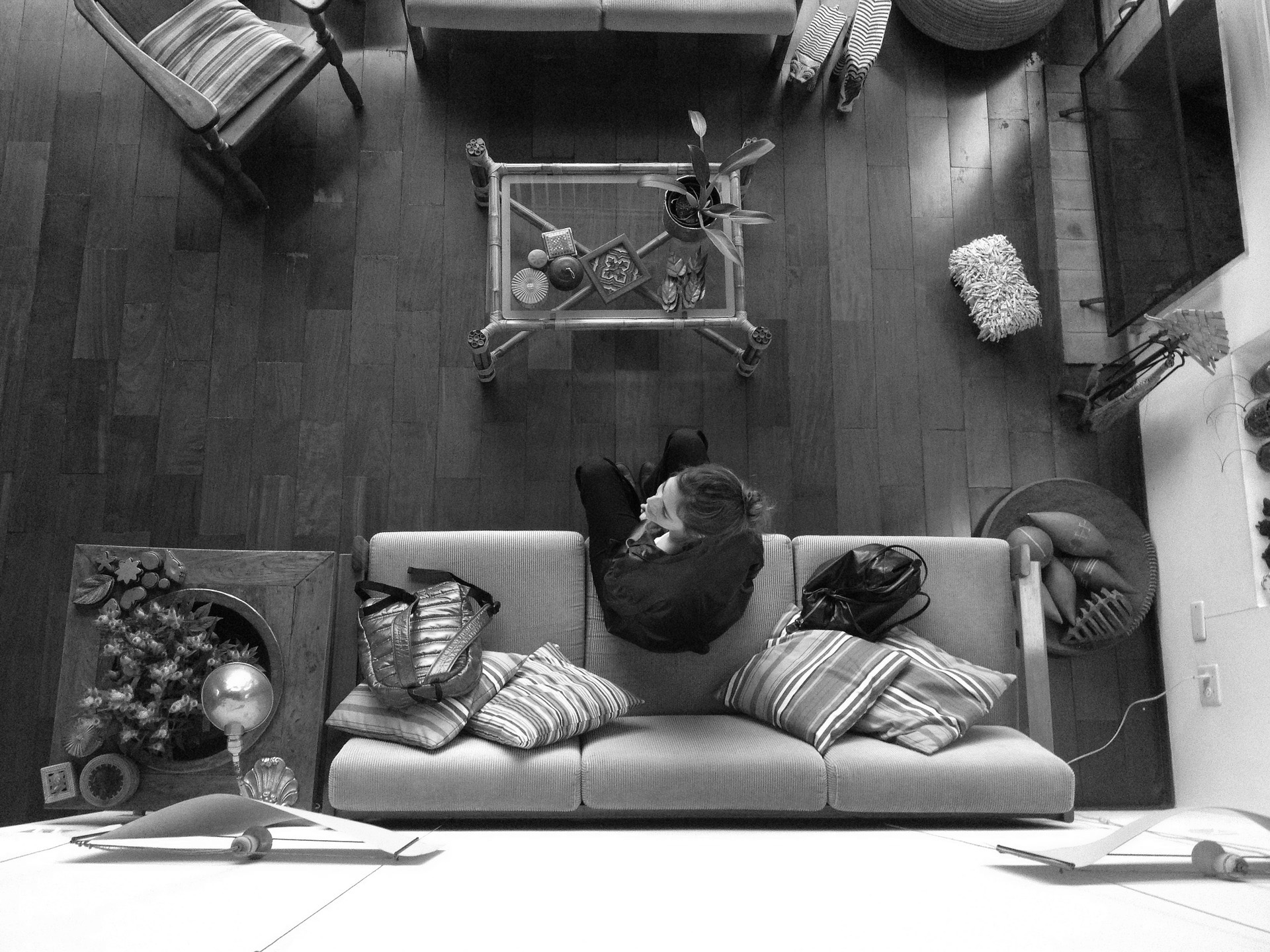 mujer en salónSe sienta en el sofá con las piernas cruzadas y una bandeja sobre las rodillas. Frente a ella, la televisión encendida exhibe un documental sobre animales marinos. Introduce la cuchara en el humeante puré de verduras  y después se la lleva a la boca, donde su lengua sólo nota el calor de la sustancia grumosa. Zanahorias, puerros, patatas y judías. Una sabrosa mezcla vegetal que en su boca carece de sentido.